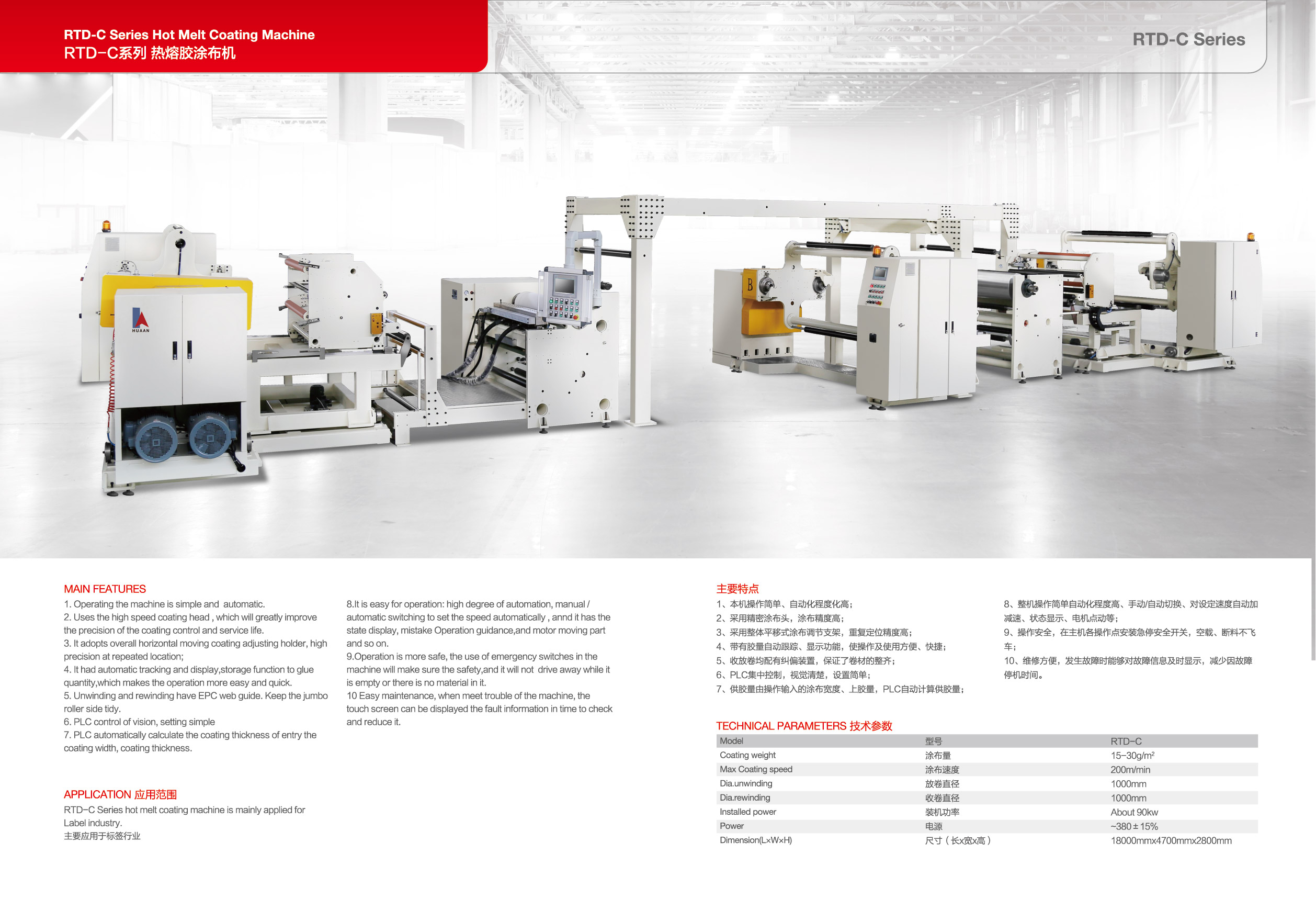 多年來,華安機械為熱熔膠涂布、復合領域提供了品種繁多的設備,產品廣泛應用于膠粘制品、防水、標簽、汽車內飾、醫(yī)用敷料、一次性婦幼用品、紙箱包裝、廣告耗材、鞋材、濾清器、熱熔膠膜、無紡布、化妝品填充、家具粘合、車燈粘合、電子、軟包裝、功能性服裝復合面料等多種行業(yè)。已經成功推出了RT系列、RT-B系列、RJT系列、RT-C系列等涂布機;新世紀2000A系列、H088、H288、H388系列噴膠機;PUR系列吸盤式熱熔膠機;RF系列復合機......